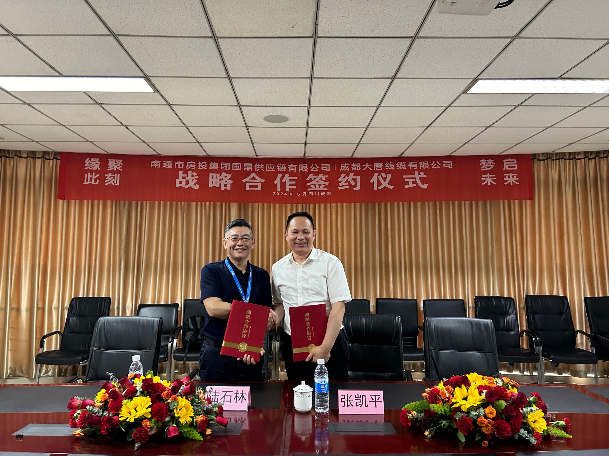 5月17日下午,成都大唐线缆有限公司与南通国鼎供应链公司达成战略合作关系,并举行了合作签约仪式