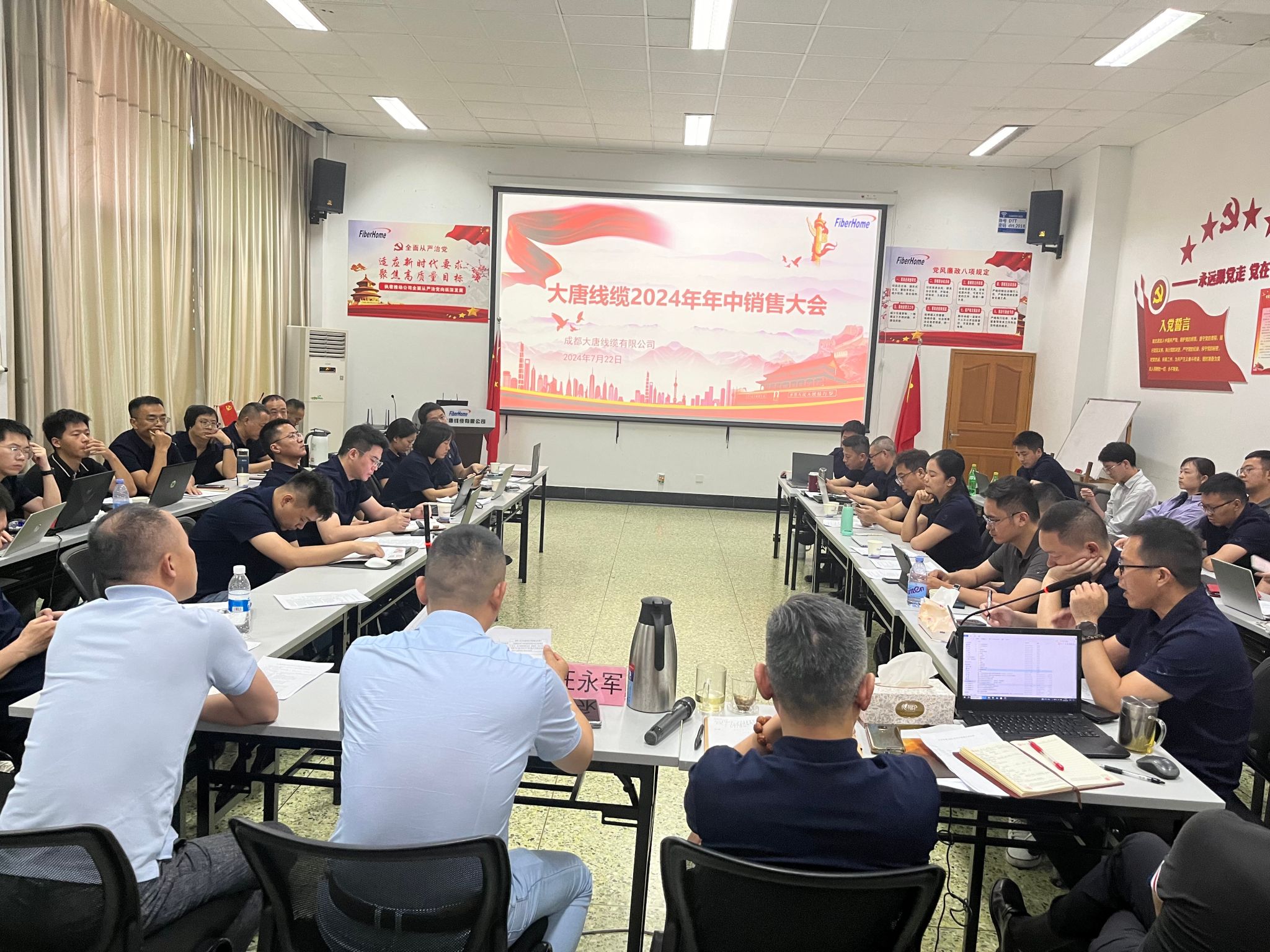 7月22日,成都大唐线缆有限公司以“坚定信心,敢打敢拼”的信念为指引,成功召开了2024年半年销售大会。公司高层与销售团队齐聚一堂,共同回顾过去展望未来,为下半年的市场工作擘画蓝图。 会议伊始,各销售平台业务主管结合各自业务板块与区域市场情况,对2024年上半年的工作进行了深入剖析。在总结经验教训的同时,他们深度聚焦行业市场现状与发展趋势,提出资源配置建议,旨在为实现公司的市场战略目标铺就坚实道路。
