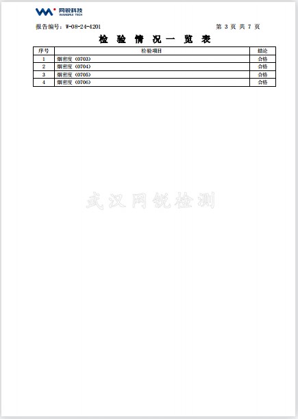 漏缆产品在武汉网锐检测科技有限公司重复性验证测试烟密度合格,且产品的烟密度降低了5%以上。